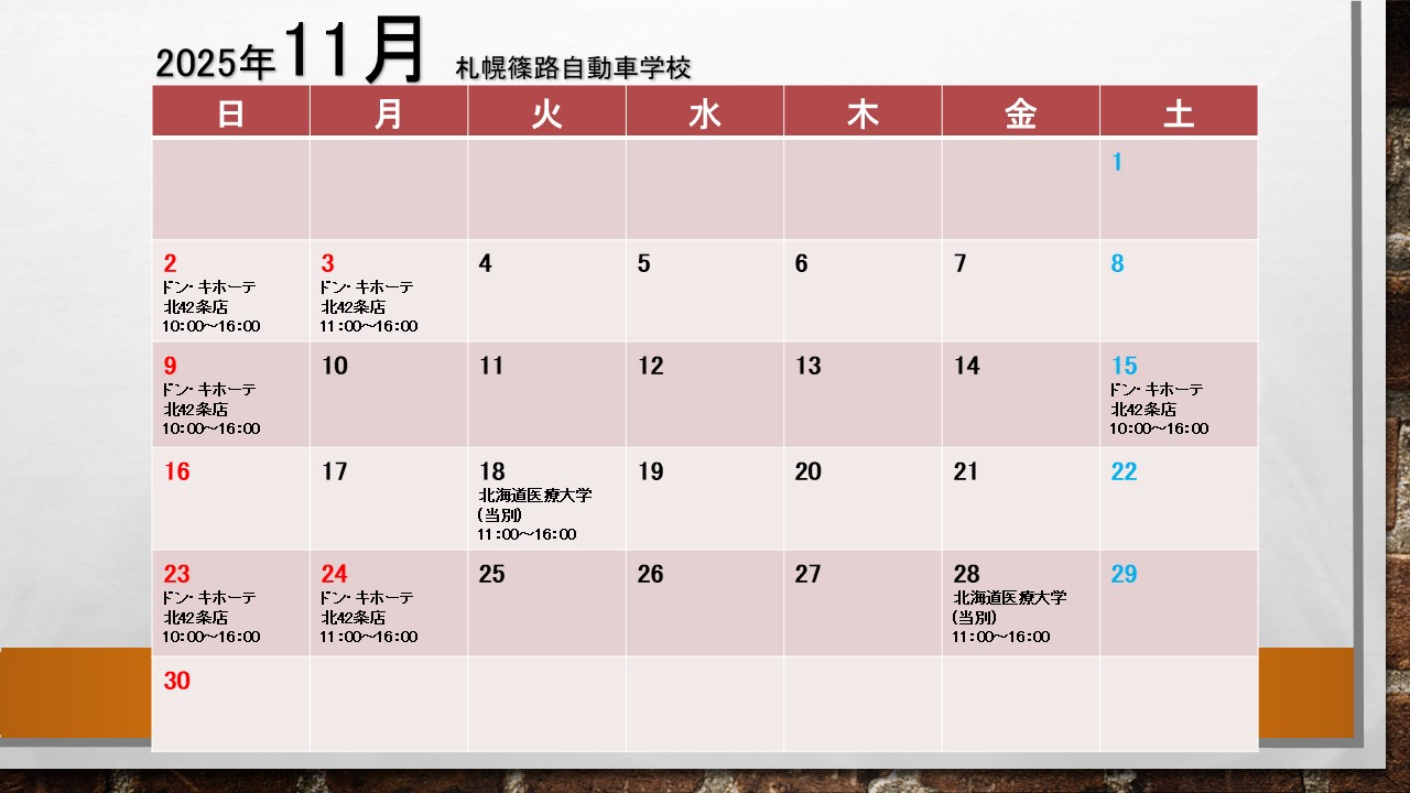 ドン・キホーテ北42条店・北海道医療大学(当別キャンパス)にて行っております。